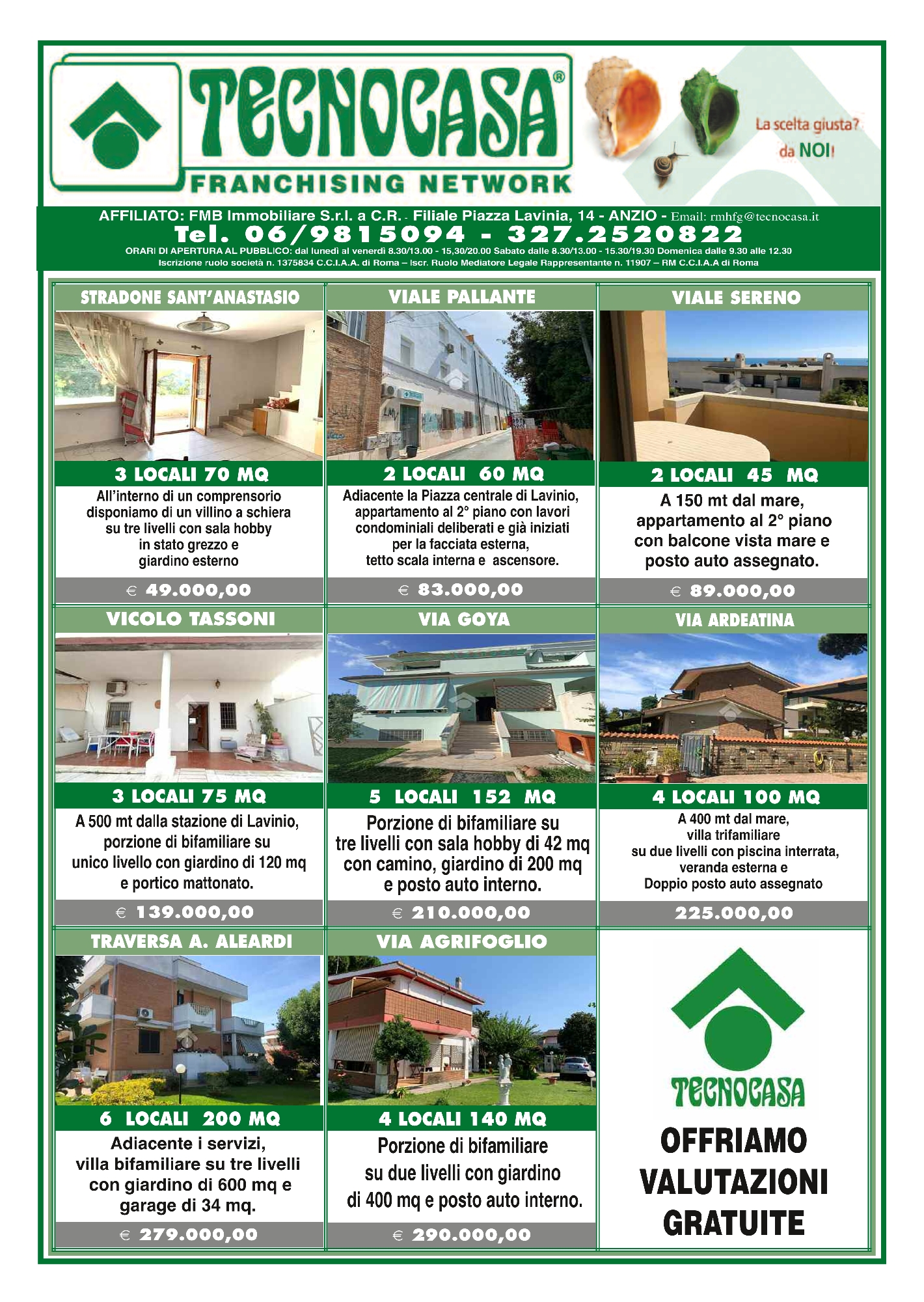 AFFILIATO: FMB Immobiliare S.r.l. a C.R. - Filiale Piazza Lavinia, 14 - ANZIO - Email: rmhfg@tecnocasa.it