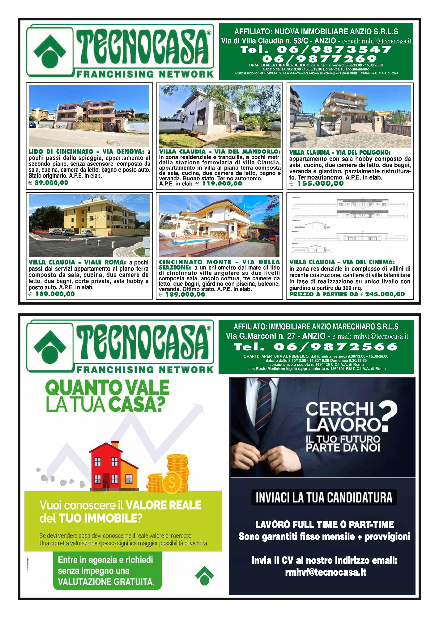 Via di Villa Claudia n. 53/C - ANZIO - e-mail: rmhfj@tecnocasa.it