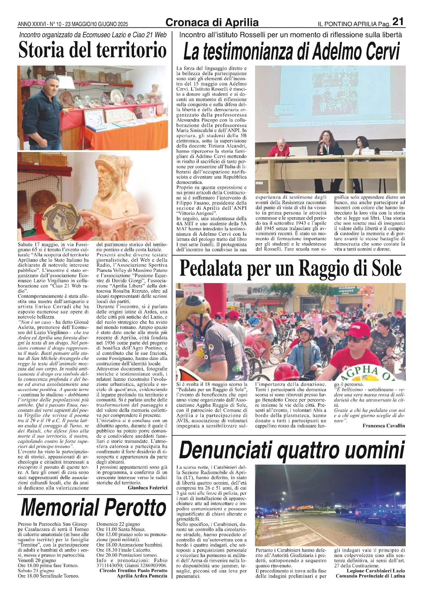 Durante l’incontro, si è parlato delle origini latine di Ardea, una delle città più antiche del Lazio, e del ruolo strategico che ha avuto nel mondo romano. Ampio spazio è stato dato anche alla storia più recente di Aprilia, città fondata nel 1936 come parte del progetto di bonifica dell’Agro Pontino, e al contributo che le sue frazioni, come Fossignano, hanno dato alla costruzione dell’identità locale.