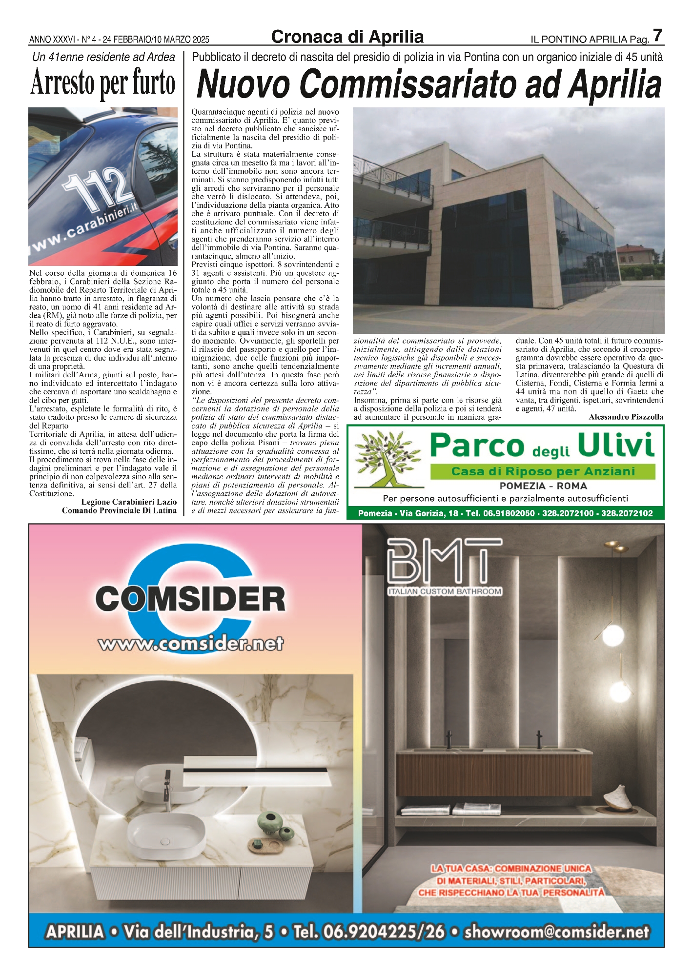 Insomma, prima si parte con le risorse già a disposizione della polizia e poi si tenderà ad aumentare il personale in maniera graduale. Con 45 unità totali il futuro commissariato di Aprilia, che secondo il cronoprogramma dovrebbe essere operativo da questa primavera, tralasciando la Questura di Latina, diventerebbe più grande di quelli di Cisterna, Fondi, Cisterna e Formia fermi a 44 unità ma non di quello di Gaeta che vanta, tra dirigenti, ispettori, sovrintendenti e agenti, 47 unità.