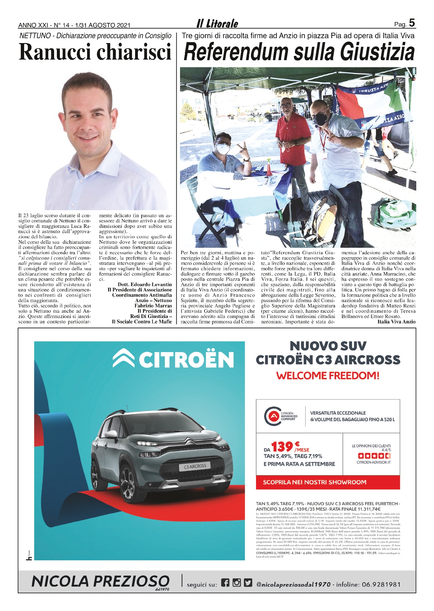 Per ben tre giorni, mattina e pomeriggio (dal 2 al 4 luglio) un numero considerevole di persone si è fermato chiedere informazioni, dialogare e firmare sotto il gazebo posto nella centrale Piazza Pia di Anzio di tre importanti esponenti di Italia Viva Anzio (il coordinatore uomo di Anzio Francesco Squintu, il membro della segreteria provinciale Angelo Pugliese e l’attivista Gabriele Federici) che avevano aderito alla campagna di raccolta firme promossa dal Comitato”Referendum Giustizia Giusta”, che raccoglie trasversalmente, a livello nazionale, esponenti di molte forze politiche tra loro differenti, come la Lega, il PD, Italia Viva, Forza Italia. I sei quesiti, che spaziano, dalla responsabilità civile dei magistrati, fino alla abrogazione della Legge Severino, passando per la riforma del Consiglio Superiore della Magistratura (per citarne alcuni), hanno raccolto l’interesse di tantissimi cittadini neroniani. Importante è stata domenica l’adesione anche della capogruppo in consiglio comunale di Italia Viva di Anzio nonché coordinatrice donna di Italia Viva nella città anziate, Anna Marracino, che ha espresso il suo sostegno convinto a questo tipo di battaglia politica. Un primo bagno di folla per la formazione politica che a livello nazionale si riconosce nella leadership fondativa di Matteo Renzi e nel coordinamento di Teresa Bellanova ed Ettore Rosato.