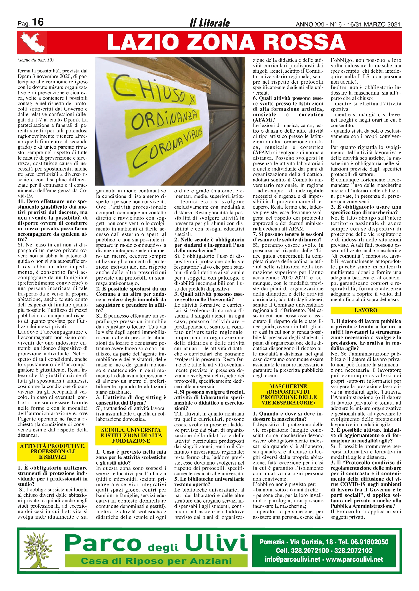 Per quanto riguarda lo svolgimento dell’attività lavorativa e delle attività scolastiche, la mascherina è obbligatoria nelle situazioni previste dagli specifici protocolli di settore.