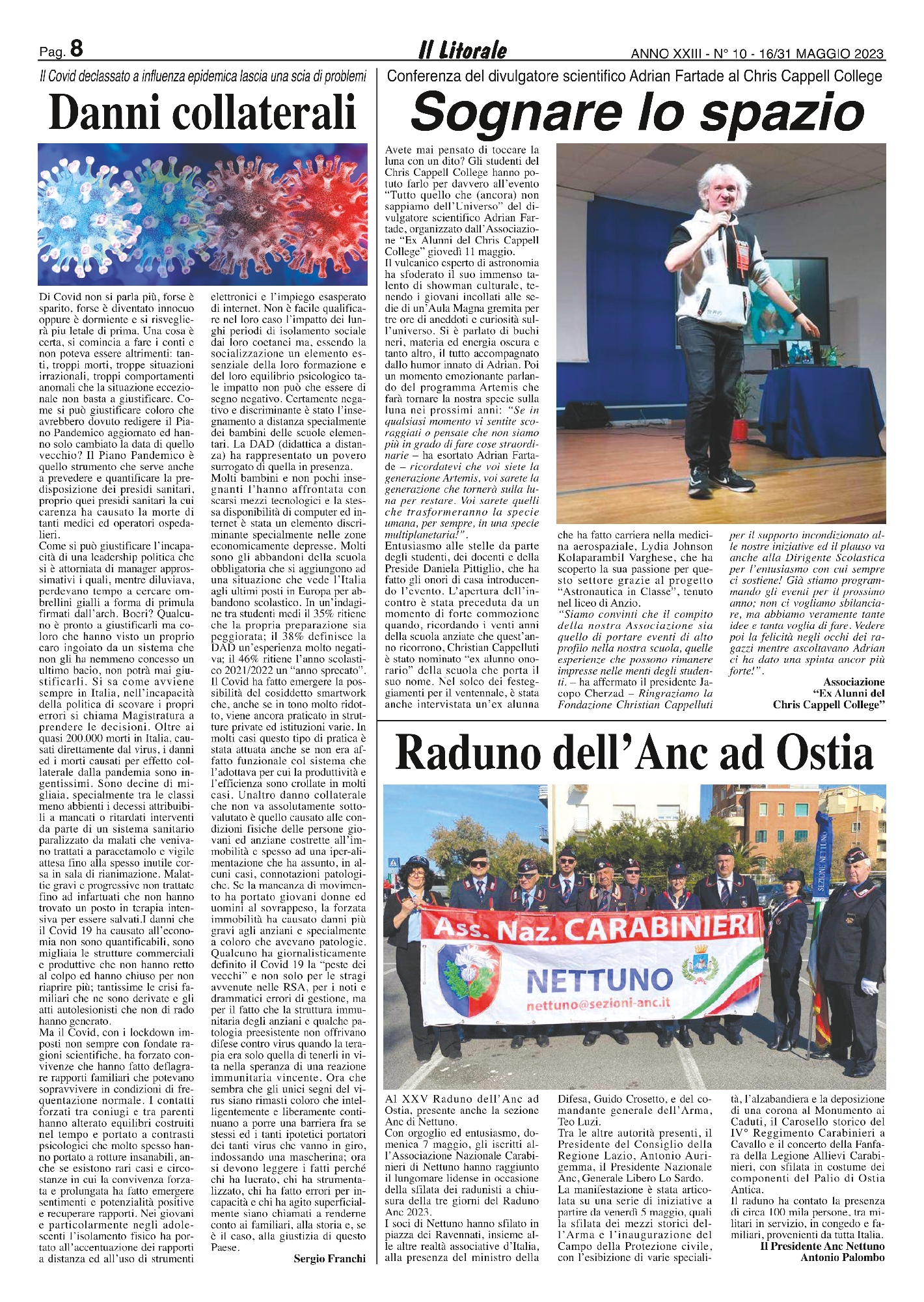 “Siamo convinti che il compito della nostra Associazione sia quello di portare eventi di alto profilo nella nostra scuola, quelle esperienze che possono rimanere impresse nelle menti degli studenti. – ha affermato il presidente Jacopo Cherzad – Ringraziamo la Fondazione Christian Cappelluti per il supporto incondizionato alle nostre iniziative ed il plauso va anche alla Dirigente Scolastica per l’entusiasmo con cui sempre ci sostiene! Già stiamo programmando gli eventi per il prossimo anno; non ci vogliamo sbilanciare, ma abbiamo veramente tante idee e tanta voglia di fare. Vedere poi la felicità negli occhi dei ragazzi mentre ascoltavano Adrian ci ha dato una spinta ancor più forte!”.
