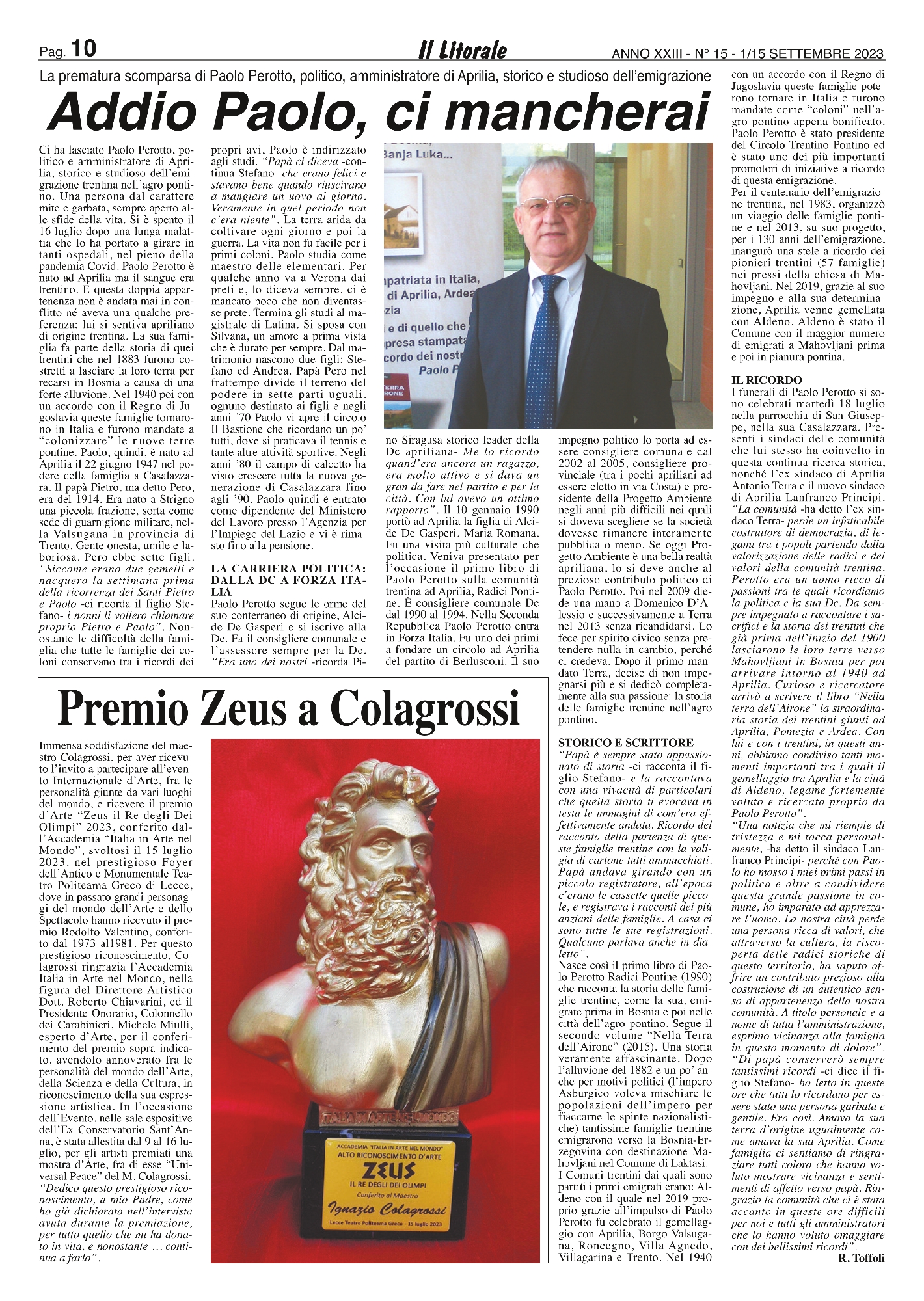 La prematura scomparsa di Paolo Perotto, politico, amministratore di Aprilia, storico e studioso dell’emigrazione