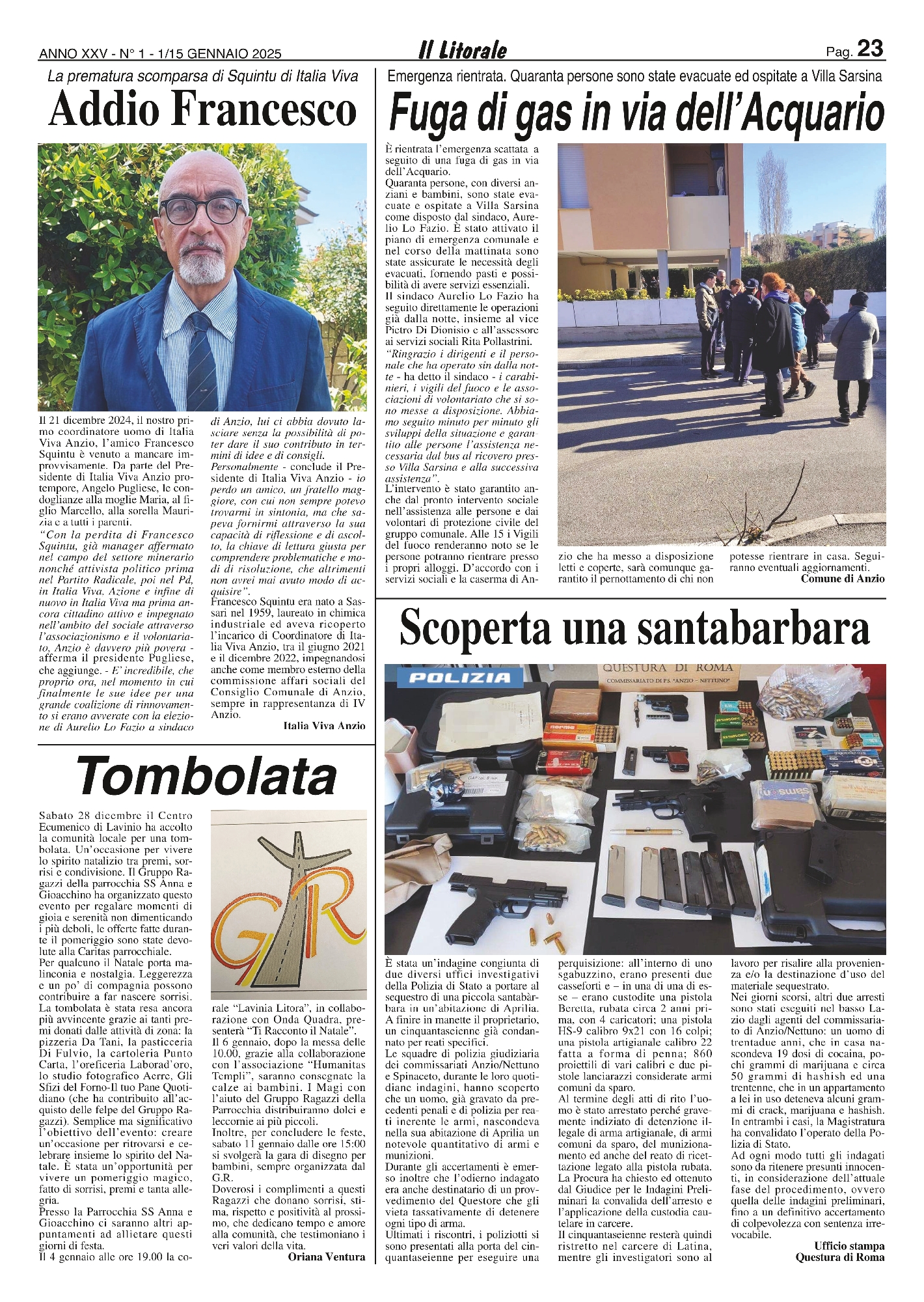 Il 21 dicembre 2024, il nostro primo coordinatore uomo di Italia Viva Anzio, l’amico Francesco Squintu è venuto a mancare improvvisamente. Da parte del Presidente di Italia Viva Anzio pro-tempore, Angelo Pugliese, le condoglianze alla moglie Maria, al figlio Marcello, alla sorella Maurizia e a tutti i parenti.