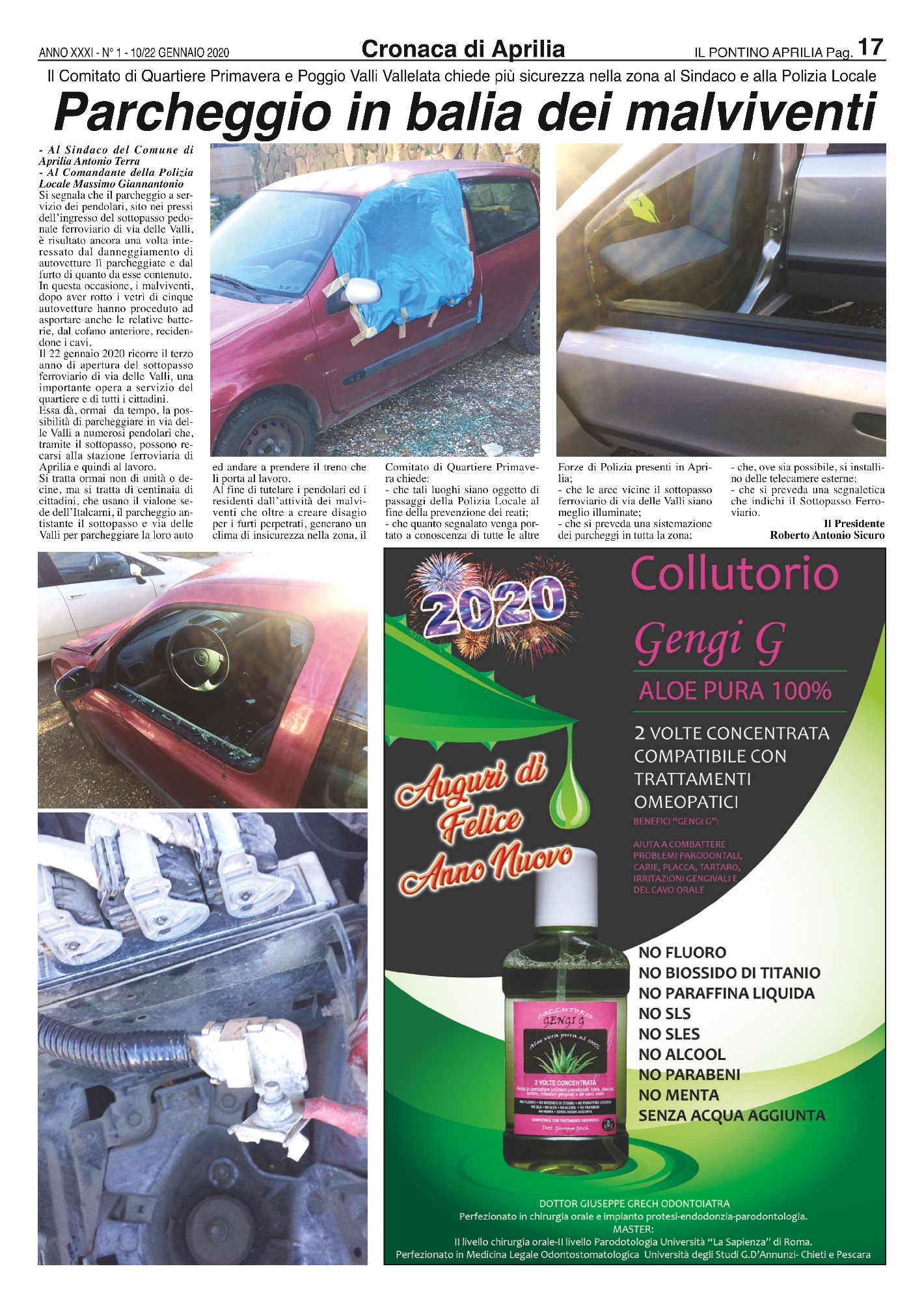 Si segnala che il parcheggio a servizio dei pendolari, sito nei pressi dell’ingresso del sottopasso pedonale ferroviario di via delle Valli, è risultato ancora una volta interessato dal danneggiamento di autovetture lì parcheggiate e dal furto di quanto da esse contenuto.