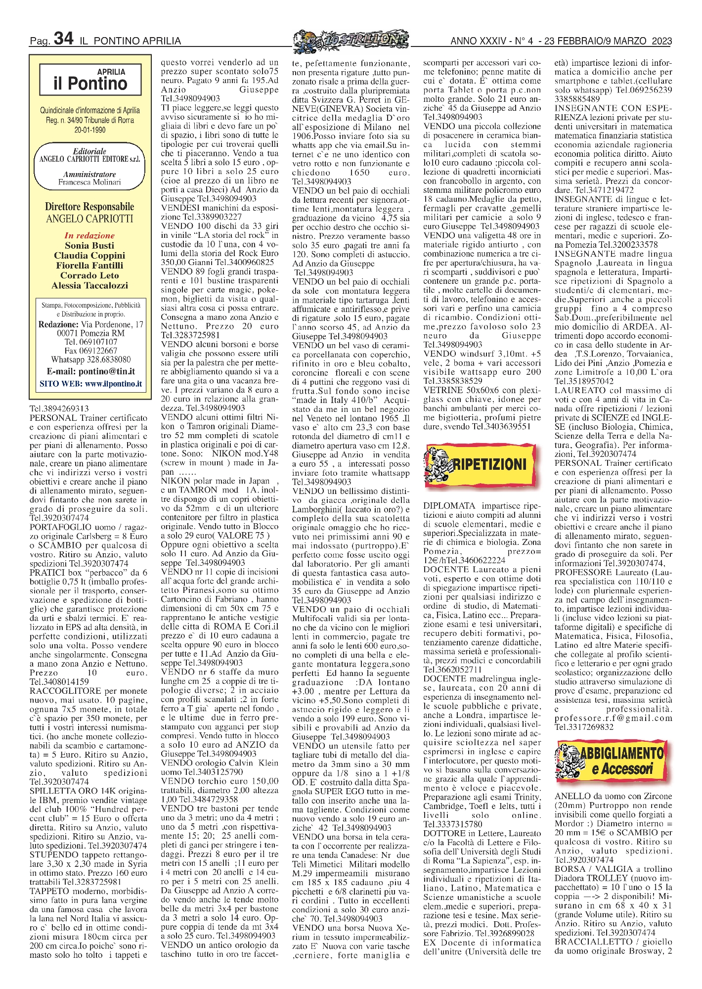 DOTTORE in Lettere, Laureato c/o la Facoltà di Lettere e Filosofia dell`Università degli Studi di Roma “La Sapienza”, esp. insegnamento,impartisce Lezioni individuali e ripetizioni di Italiano, Latino, Matematica e Scienze umanistiche a scuole elem.,medie e superiori, preparazione tesi e tesine. Max serietà, prezzi modici. Dott. Professore Fabrizio. Tel.3926899028
