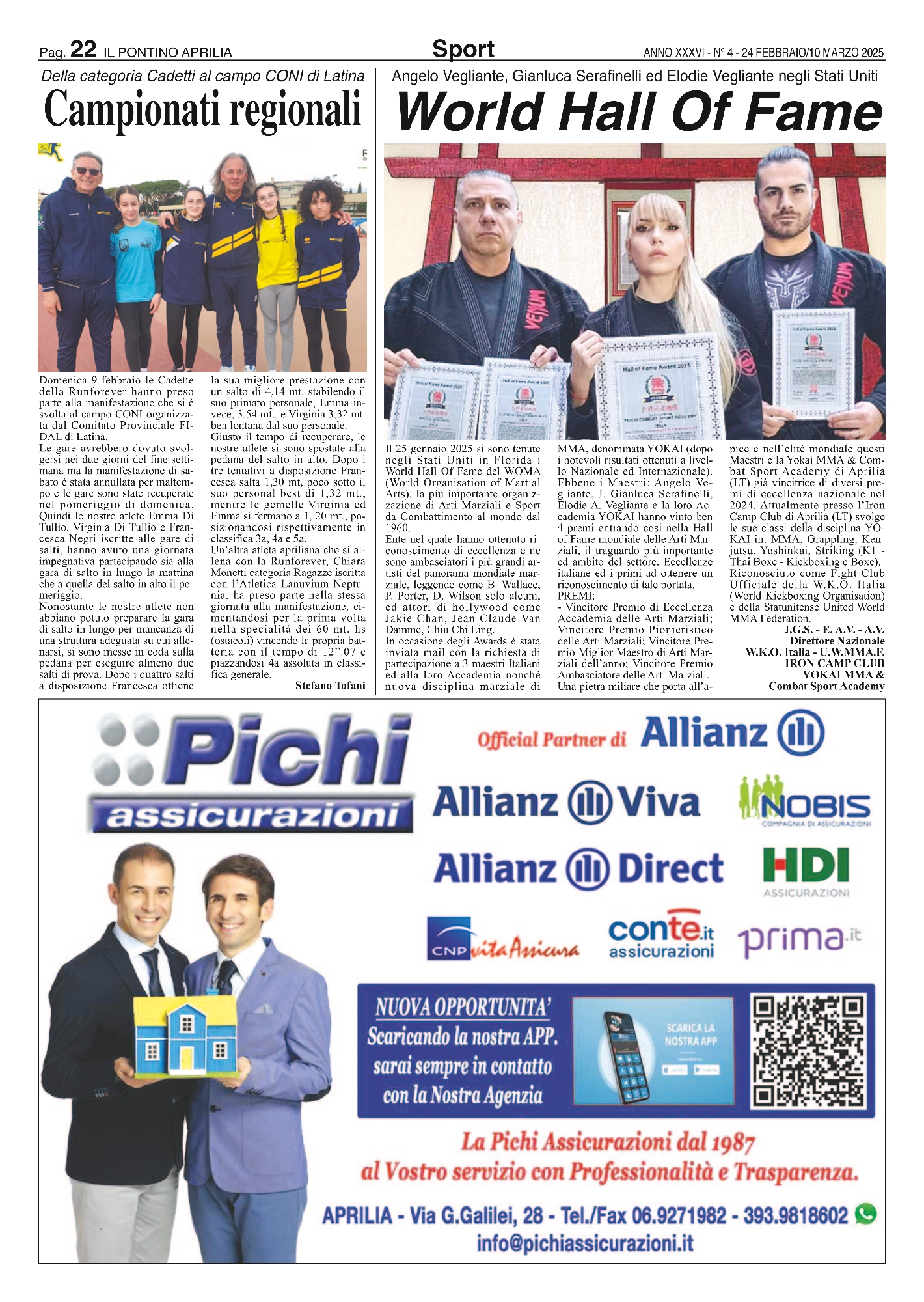 Il 25 gennaio 2025 si sono tenute negli Stati Uniti in Florida i World Hall Of Fame del WOMA (World Organisation of Martial Arts), la più importante organizzazione di Arti Marziali e Sport da Combattimento al mondo dal 1960.
