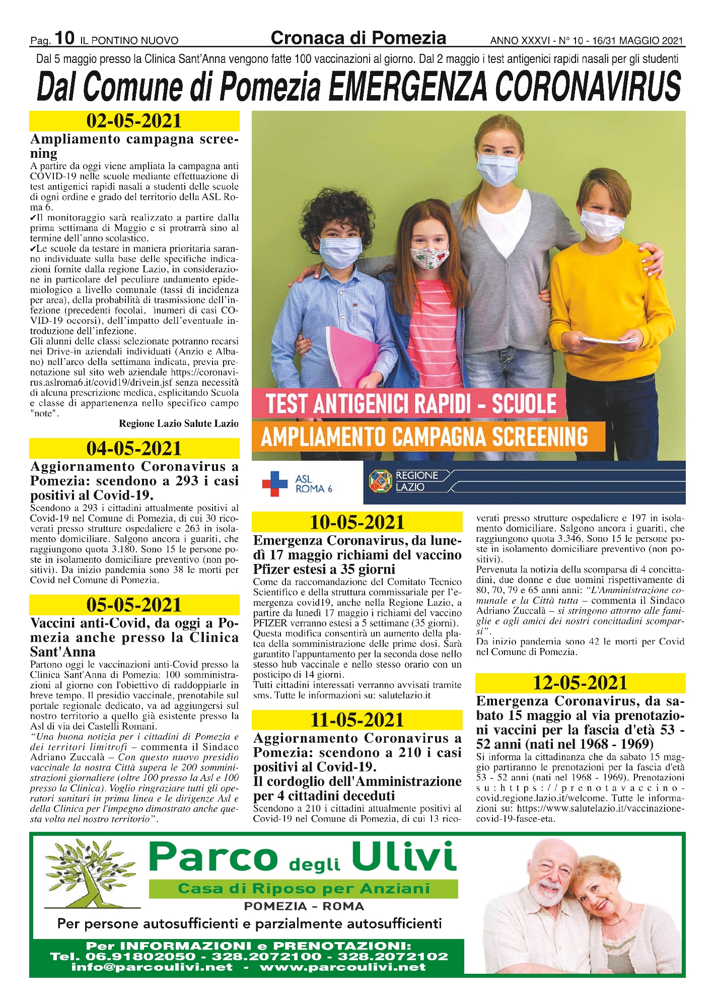 Dal 5 maggio presso la Clinica Sant’Anna vengono fatte 100 vaccinazioni al giorno. Dal 2 maggio i test antigenici rapidi nasali per gli studenti