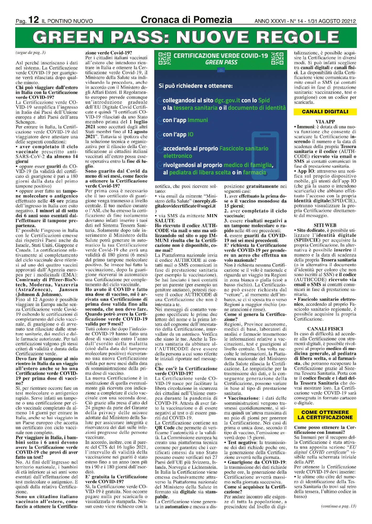 Per andare incontro alle esigenze di tutta la popolazione, a prescindere dal livello di digitalizzazione, è possibile acquisire la Certificazione in diversi modi. Si può infatti scegliere tra canali digitali e canali fisici. La disponibilità della Certificazione viene comunicata tramite email o SMS (ai contatti indicati in fase di prestazione sanitaria: vaccinazione, test o guarigione) con un codice per scaricarla.