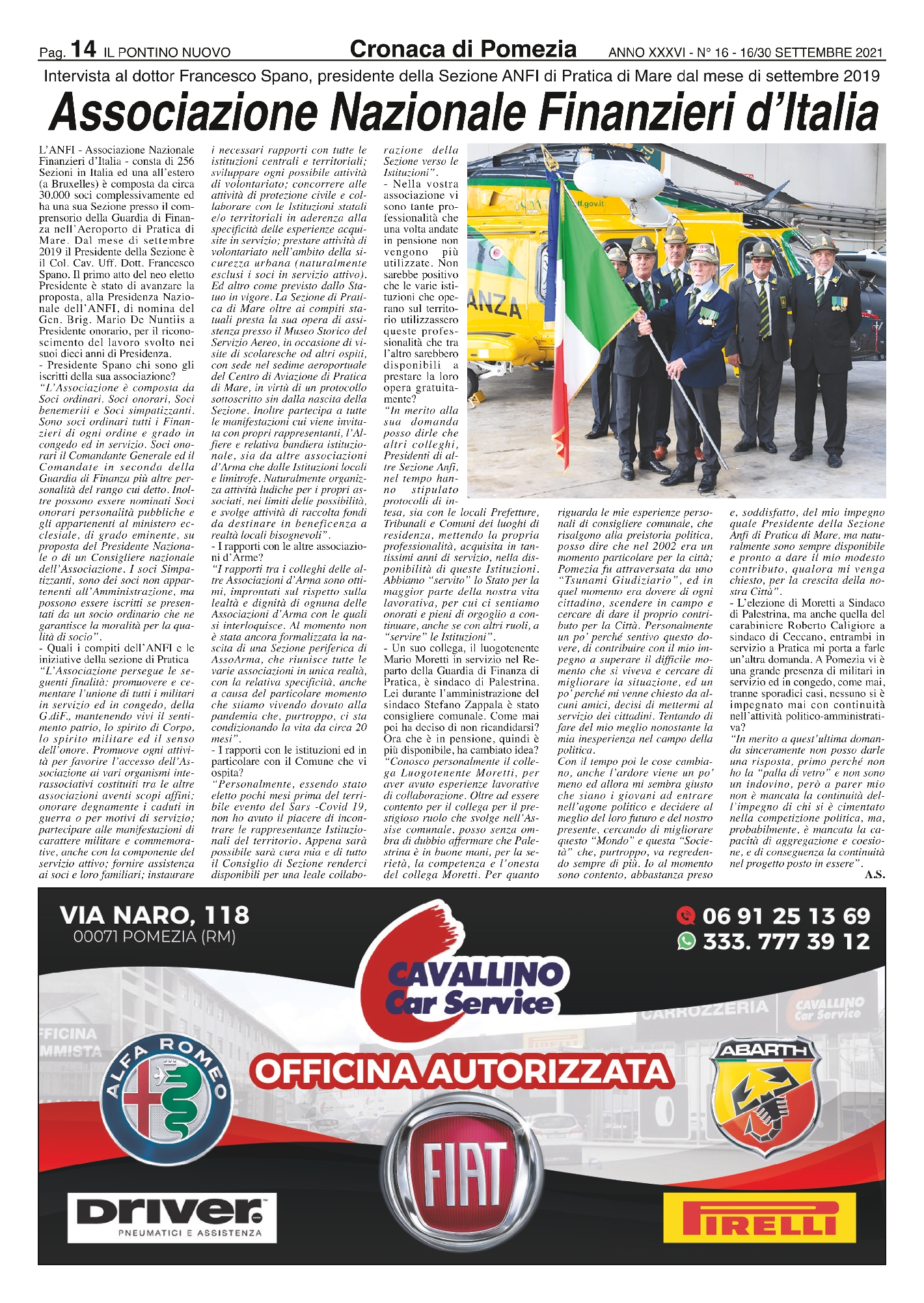 Intervista al dottor Francesco Spano, presidente della Sezione ANFI di Pratica di Mare dal mese di settembre 2019