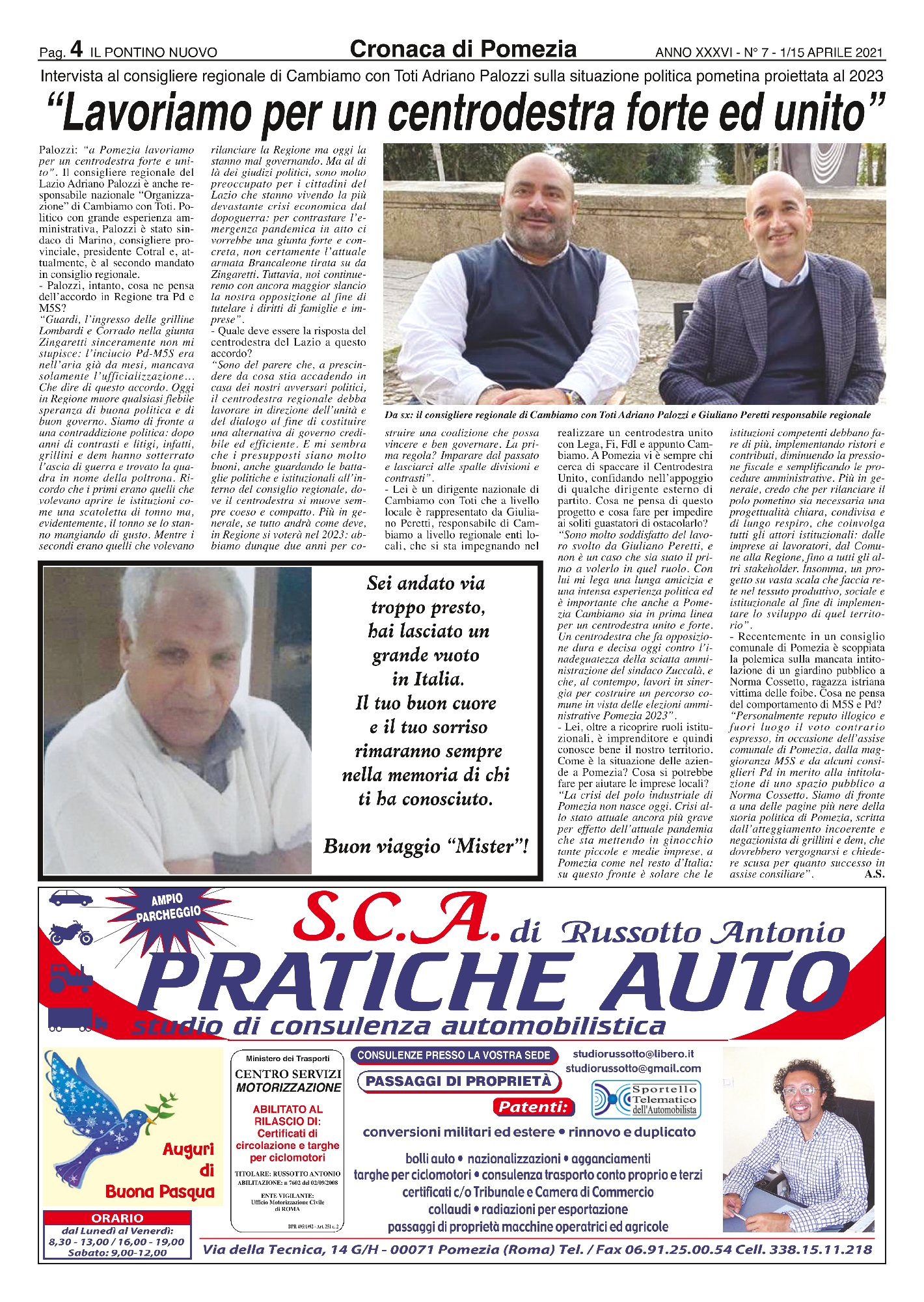Intervista al consigliere regionale di Cambiamo con Toti Adriano Palozzi sulla situazione politica pometina proiettata al 2023